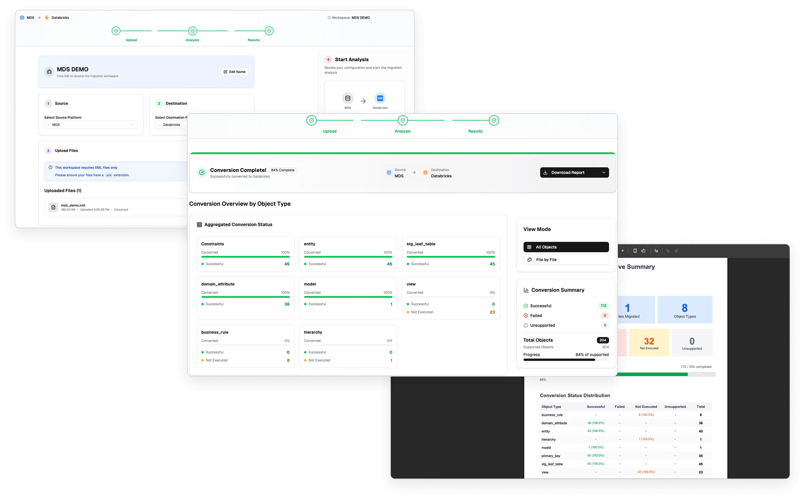 MetaConvert is our built-in, no-cost migration utility that automatically converts your existing Informatica MDM objects into Databricks-native, LakeFusion-ready assets with minimal effort.